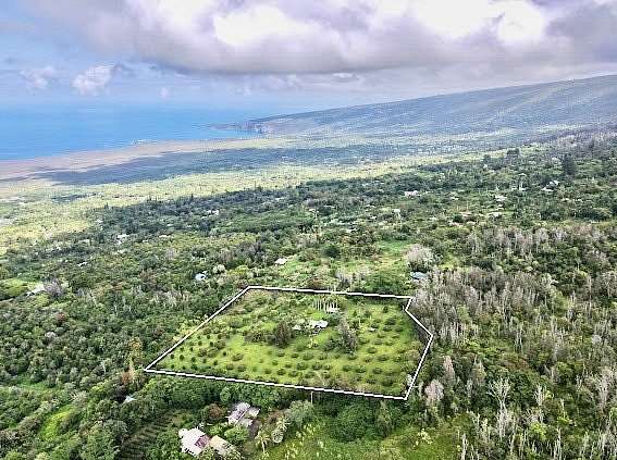 This is a leasehold property. This nearly 10 acre property offers the sustainable, off-grid lifestyle many dream of and now available for the first time on the market! Perfect for a family or individual seeking to live the farming lifestyle, it combines a solid home, income-producing orchards, and panoramic coastline views with year-round sunsets. The 2-bedroom, 1-bath 1975 home is well-built, with an additional large room (formerly an office, now storage), a separate carport and attached tool shed housing the off-grid system. A second detached structure provides a covered workspace and secure storage. Off-Grid Systems Include: * 2 catchment tanks: steel tank at the top of the property gravity-feeds the home and a second tank supplies the orchards * 6 PV panels * 2 Outback solar inverters & 2 Signature Solar EG4 batteries * Propane on-demand hot water, range, and refrigerator The property is fully fenced and thoughtfully laid out for farming and homesteading. Mature plantings include 2.5 acres of Kona coffee, lychee, and mixed crops ( *see attached fruit tree list ), plus two large vegetable garden plots, and areas previously planted with taro, sweet potato, and asparagus. With daily farmers markets nearby, there's ample opportunity to generate a comfortable income from the land. Located 1 mile up Telephone Exchange Road, directly above Pu'uhonua O Honaunau, the property enjoys sweeping ocean views spanning from Kealakekua Bay to Honaunau. This is a rare offering where sustainable living, income potential, privacy and breathtaking Kona coast scenery come together. The property overlooks Pu'uhonua O'Honaunau, The City Of Refuge; a National Historical Park, which is a culturally significant Hawai'i landmark. Other nearby beaches include Ho'okena, Manini, Ke'ei and Kealakekua Bay. * KSBE LH properties require a cash purchase and take approximately 6 months to Close escrow * Lease to 12/31/2055.