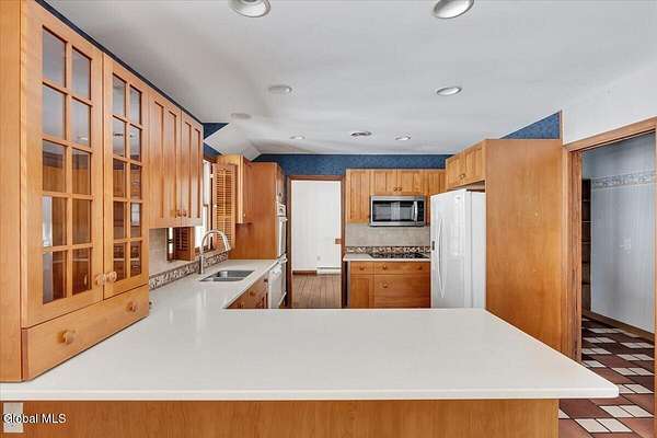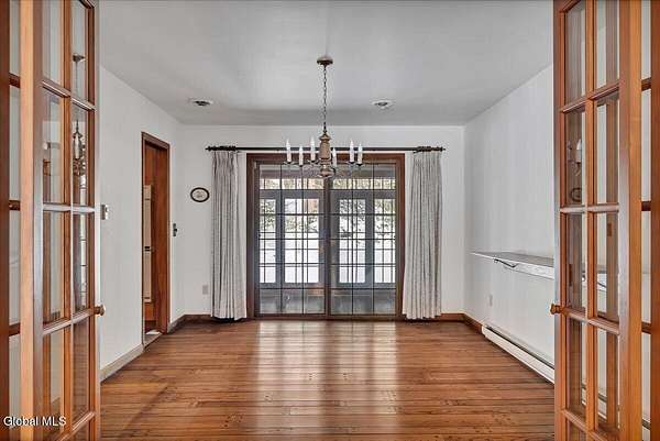 You will appreciate the warmth and charm of this residence that blends comfort and flexibility. Relax on the covered front porch or entertain on the back deck. The main floor offers living room, formal dining room, both with wood floors, eat in kitchen and family room with tiled floor and brick fireplace. Also in the family room you will find sliding door to the deck and a spiral staircase to the cozy library area off the primary bedroom. On the second floor along with the primary suite there are 2 oversized bedrooms, walk in closets and an additional full bath. The basement offers a finished rec room with kitchen area, 2 additional bedrooms, bath, bilco door for additional entry and storage/workshop area. This versatile flex area provides opportunity for extended family or guests. Another feature is the delightful three season room that leads to an indoor in ground pool to swim year round!! All set on a lovely 2.87 acre lot in the Averill Park School District.