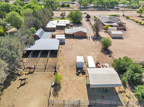 Welcome to your dream ranch retreat! Nestled on 2.5 fully fenced acres, 84 Fire Station Rd offers rural charm and modern comfort. This unique property features a spacious main residence, with Hard wood floors, and tons of light.Equestrian enthusiasts will appreciate the well-equipped facilities, including a hay barn, horse stalls, corral, and a detached work garage perfect for storage, hobbies, or projects. Enjoy breathtaking views of the surrounding landscape, all while being just minutes from the heart of Los Lunas.