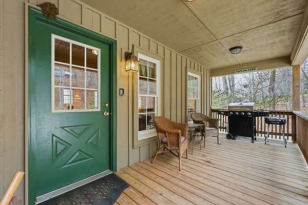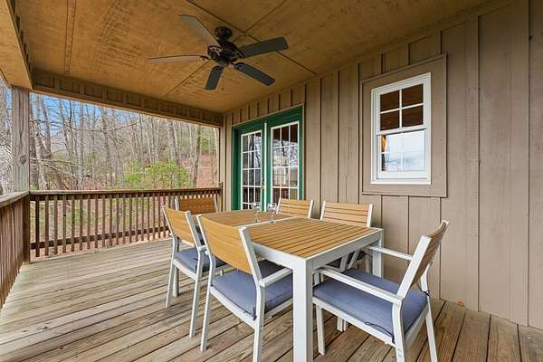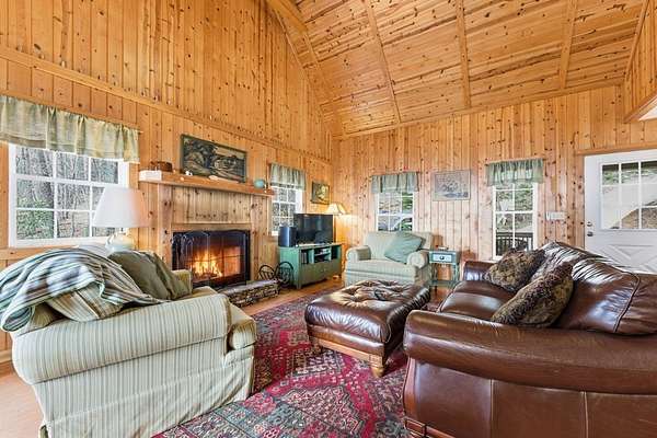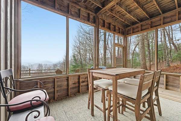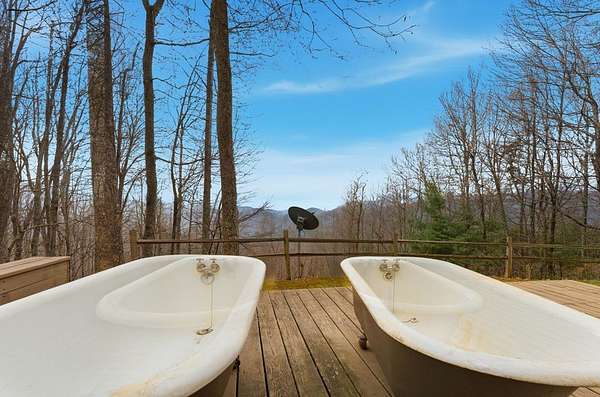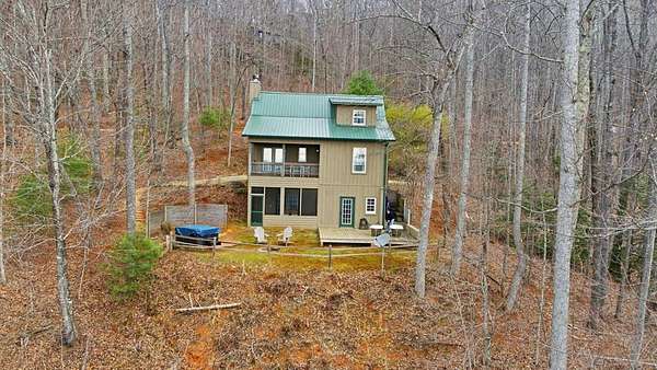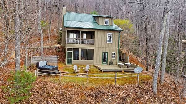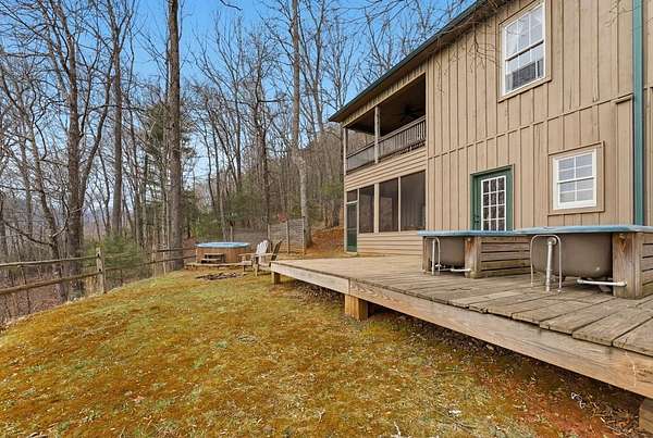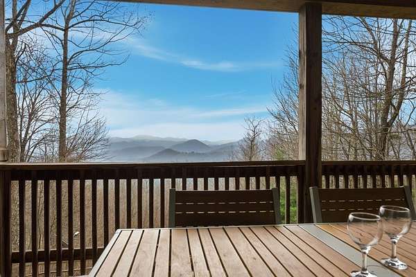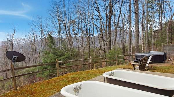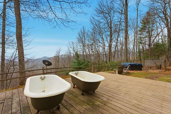 Escape to your own private mountain haven in this charming 2-bedroom, 2.5-bath cabin, where breathtaking long-range views stretch for miles into Georgia. Inside, a warm and inviting living room with a cozy fireplace sets the scene for crisp mountain evenings. The home offers comfort and flexibility, with a loft currently used as a bedroom and full bath upstairs—ideal for guests or a peaceful retreat. From the main-level bedroom, step onto the open balcony—perfect for enjoying morning coffee and unforgettable sunset skies. Downstairs features an expansive bedroom suited for guests or a luxurious primary retreat, with a nearby half bath and access to a screened porch. Enjoy a sprawling deck for entertaining or soaking in the views. Relax in the hot tub, unwind in classic clawfoot tubs, or take in nature from the unique outdoor shower that will fully immerse you in nature. Whether you're seeking a full-time residence, weekend getaway, or investment property, this cabin blends rustic charm with modern comfort. 3 Bedroom Septic to allow for flexibility. Just 20 minutes to shopping and dining in Franklin, 30 minutes to Clayton, GA, and 45 minutes to Highlands. Come see it for yourself!