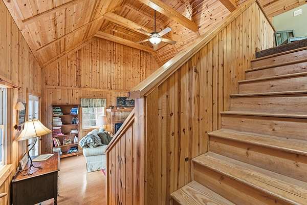 - Cathedral/Vaulted Ceiling, Ceiling Fans, Formal Dining Room, Great Room, Hot Tub/Spa, Main Level Living, Primary On Main Level, Window Treatments