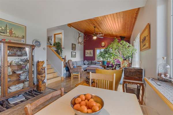 Life on the river hits different when you've got space, privacy, and panoramic views-welcome to your Montana escape on nearly 2 acres. Set above the scenic Missouri River, this 3-bed, 3-bath property offers mountain, river, and valley views in every direction. With warm wood finishes, vaulted ceilings, a cozy wood stove, and natural light pouring through every window, the main home is as inviting as it is functional. The kitchen boasts solid cabinetry, stainless steel appliances, and a picture window at the sink that frames the Montana horizon. Outside, enjoy a lush fenced yard with hot tub, multiple outbuildings, and a detached 2-car garage with finished upper-level space-ideal for guests or hobbies. Ample parking, a plug-in for the RV (no sewer drain), storage sheds, and river access provides flexibility for year-round living or getaway potential. Just minutes to Townsend, and a quick drive to Helena or Canyon Ferry. No HOA, no restrictions-just freedom and big sky.