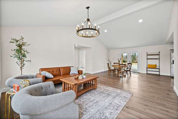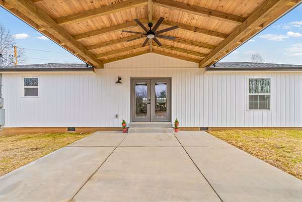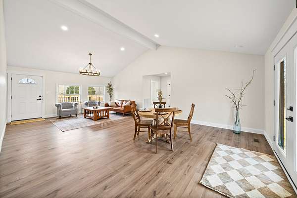 Inside, you'll find a bright, open-concept layout featuring a completely updated kitchen with crisp white cabinetry, sleek countertops, stainless steel appliances, that flows seamlessly into the living and dining areas--perfect for entertaining or everyday living. The spacious living room is filled with natural light and showcases beautiful flooring throughout. Step outside to the covered back patio with wood-beam ceiling--an ideal spot to relax, grill, or enjoy the views year-round. The land offers endless possibilities for gardening, animals, recreation, or simply enjoying wide-open space. Every detail has been thoughtfully renovated, making this home truly move-in ready. Whether you're looking for a full-time residence or a private retreat, this property offers the rare combination of modern comfort and country charm. Don't miss this incredible opportunity to own a turn-key home with land--schedule your private showing today!