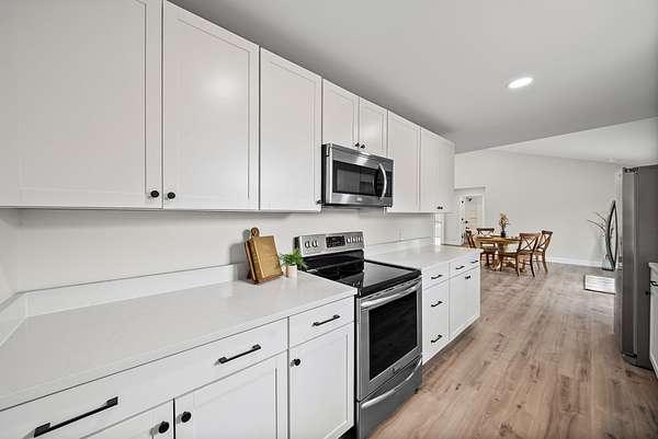 - Dishwasher, Electric Oven, Electric Range, Ice Maker, Microwave, Refrigerator, Stainless Steel Appliance(s)