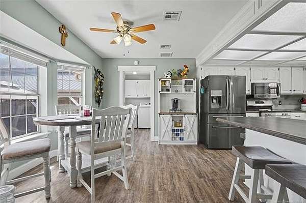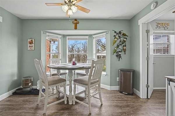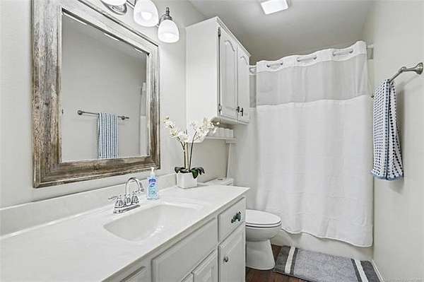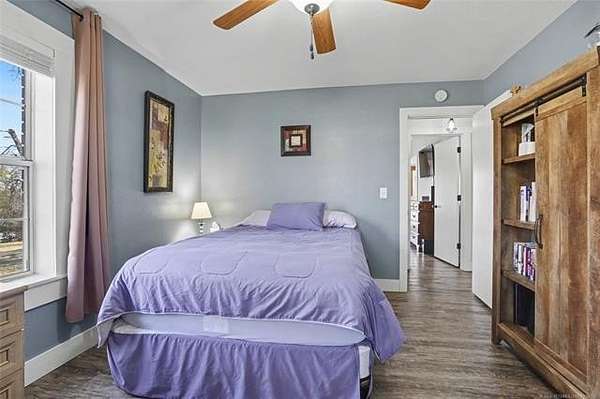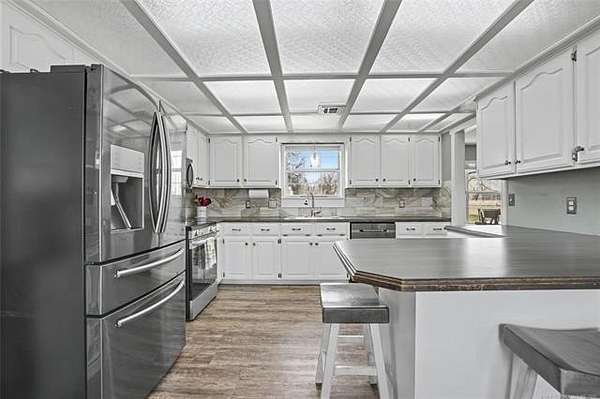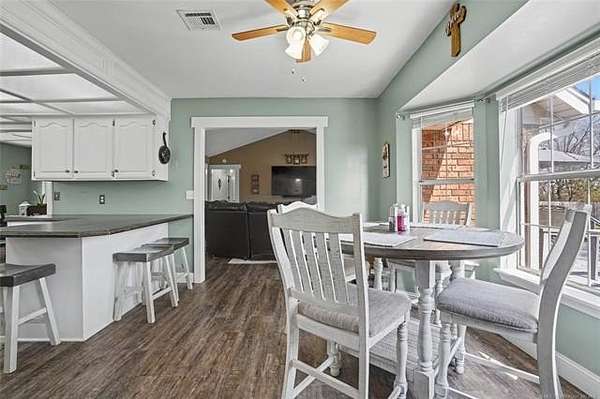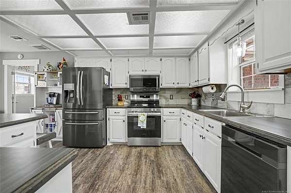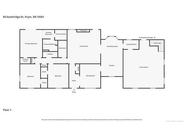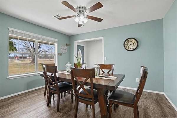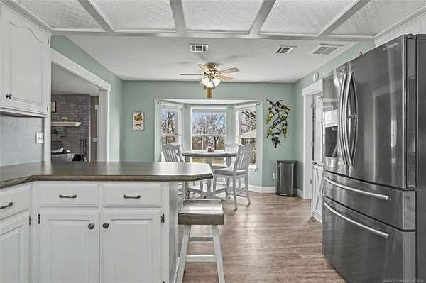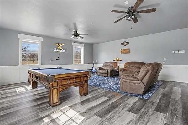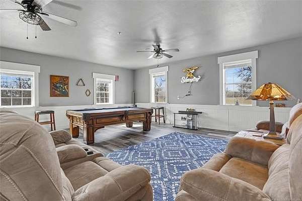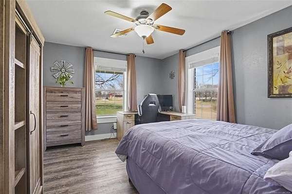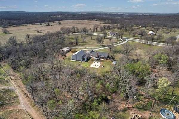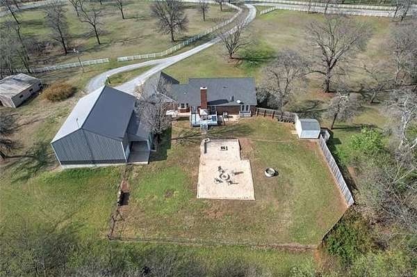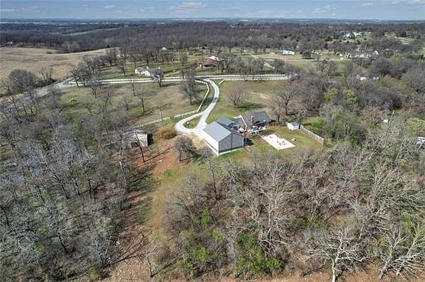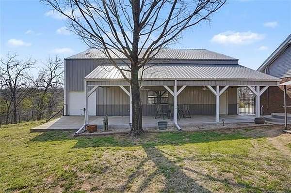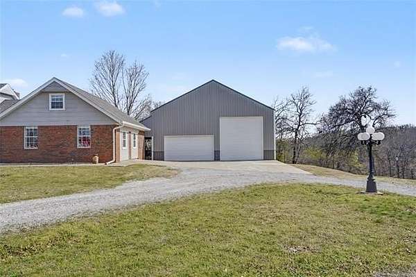 Welcome to your private country retreat on 10 scenic acres, complete with a charming white fence and endless possibilities. This beautifully maintained home offers 3 spacious bedrooms, each with walk-in closets, and a luxurious primary suite featuring vaulted ceilings, dual closets, a skylit bath, and a custom walk-in shower with bench seating. The main living area impresses with vaulted ceilings and a stunning whitewashed fireplace designed to efficiently warm the kitchen and hallway. The kitchen is well-appointed with stainless steel appliances, generous counter space, a breakfast nook, and peninsula seating, with a formal dining room just steps away. A converted garage provides a large second living area or game room perfect for entertaining while upstairs, a versatile loft serves as a fourth bedroom or bonus space. Outside, enjoy a fully fenced backyard with a deck and storage shed, along with a 40x50 insulated shop featuring three overhead doors, a 14-foot bay, electric openers, and 220 hookups, plus an additional barn. Recent updates include HVAC (2023), a newer roof (7 years), gutters, fixtures, paint, and flooring. Conveniently located with easy access to I-44 just minutes to Pryor, Claremore, Grand Lake, and Tulsa and equipped with reliable high-speed fiber internet, this property blends comfort, function, and lifestyle.