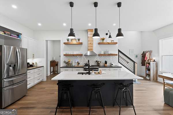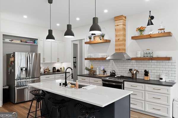 Welcome to 84 Timber Walk in beautiful Dawsonville, GA! Tucked away on a wooded double lot at the end of a cul-de-sac, this custom-built modern farmhouse offers the rare combination of privacy, space, luxury, and everyday convenience - with no HOA. From the moment you walk in, the scale and craftsmanship stand out. The main level features 10-foot ceilings, with select areas reaching 11 feet, along with 8-foot doors that create a bright, grand, and welcoming feel. Designed for both comfortable living and memorable entertaining, the heart of the home is a massive open-concept family, dining, and kitchen space that feels as impressive as it is functional. With 5 bedrooms and 3.5 baths, this layout is ideal for growing families, guests, or multigenerational living. The main level includes 4 bedrooms, including a beautiful primary suite with a luxury soaking tub, glass shower, and a spacious walk-in closet with custom shelving on both sides. Upstairs, the private ensuite retreat offers a full bath and walk-in closet with custom shelving, making it the perfect space for guests, teens, or extended family. Every inch of this home was built with intention. The walk-in pantry features custom built-in shelving and a built-in microwave. The laundry room offers the space busy families actually need, while the mudroom adds even more everyday functionality with a bench and custom upper cabinetry for back-stock and storage. Even the oversized 2-car garage goes beyond expectations, complete with custom heavy-duty organizational shelving and a built-in tool table. Step outside and you'll find one of the home's best lifestyle features - a screened-in deck off the living room, perfect for summer BBQs, birthday parties, game-day gatherings, or simply unwinding in peace. With stairs leading directly down to the patio below, the outdoor setup is ready for entertaining on every level. And then there's the basement - a true opportunity space. With approximately 2,400 square feet, 12-foot ceilings, framing already in place, bathroom stub-out, existing outlets, and vents to help maintain airflow year-round, it's ready to become whatever you need next: a media room, gym, in-law suite, playroom, home office, or all of the above. Location makes this home even more exceptional. You're a few minutes from Old Town Dawsonville, extremely close to the elementary, junior high, and high school, and approximately 5 minutes to GA-400 for an easy commute. Best of all, you're centrally located to everything North Georgia has to offer. This is more than a beautiful house - it's the kind of property buyers wait for.