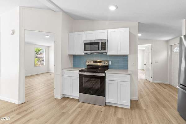 Welcome to 840 Ed Thomas Road in Cameron, renovated 3-bedroom, 2-bath home offering approximately 2,026 square feet of updated living space surrounded by the peaceful North Carolina countryside. Step inside an open-concept layout featuring brand-new luxury vinyl plank flooring, fresh paint, and abundant natural light throughout. The spacious living areas create the perfect setting for relaxing or entertaining, while the fireplace adds to the main gathering space. The fully updated kitchen is designed for both style and function, featuring modern white cabinetry, sleek quartz countertops, a beautiful tile backsplash, and stainless steel appliances. With ample cabinet and counter space, this kitchen is ready for everyday living or hosting friends and family. The large primary suite offers a true retreat, complete with a bathroom featuring a freestanding soaking tub, dual vanity, and plenty of space to unwind. Two additional bedrooms provide flexibility for guests, family, or a home office. Outside, enjoy the fresh air from the newly built front deck, perfect for morning coffee or evening relaxation while overlooking the quiet wooded surroundings. Located in Cameron, this property offers the perfect blend of privacy and convenience. You'll be within easy driving distance of Sanford, Spring Lake, and Fort Liberty, making it ideal for commuters and military families. The historic town of Cameron is known for its antique shops, charming local restaurants, and seasonal events, while nearby parks, golf courses, and outdoor recreation in the Sandhills region provide plenty of ways to enjoy the area. If you're looking for a home with modern updates, spacious living areas, and peaceful surroundings, this beautifully renovated property is one you won't want to miss.