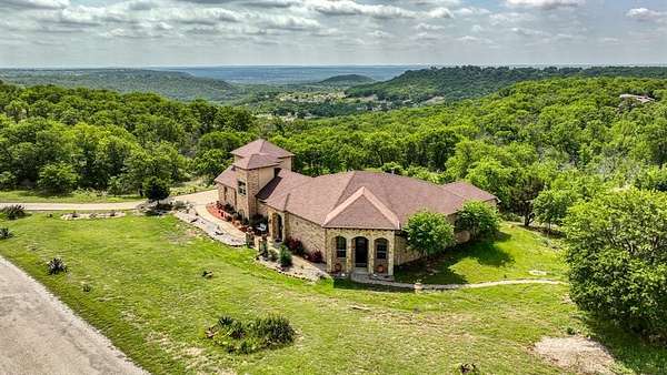 Extraordinary privacy. Beautiful Clayton Mountain views in every direction and your own beautiful private pond on the property! The TPWD Fawcett Wildlife Management Area across the street. Abundant wildlife, incredible resort quality amenities, hiking trails, and fishing lakes within the community. This fantastically maintained home offers your opportunity to invest in a way of life enjoyed by only a select few. The home features a spacious owners suite with large bathroom and closet. Two guest rooms and a guest bath provide space for friends and family to come visit you at your luxurious retreat home. Keep your win collection on display in custom wine bar and storage rack. All living space is on the ground floor, but an awesome observation patio is located upstairs giving second story views over the hill country surroundings. This makes the perfect place to enjoy your morning coffee or a nice glass of wine with friends. Buying this home represents more than simply a real estate purchase...it represents an investment in your lifestyle that will provide vacation living to your everyday life. The community is located only 30 miles west of Weatherford, and conveniently accessible via interstate 20. Step out of the ordinary and explore the possibilities atop Clayton Mountain!