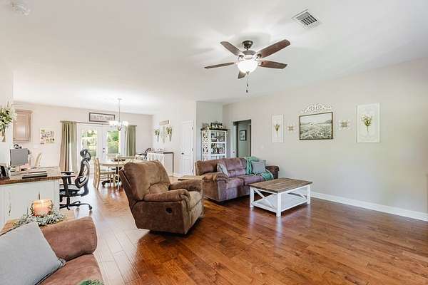 Welcome to this charming, move-in ready single-story home that perfectly blends comfort, style, and functionality. Nestled on a spacious 3.51 acre lot with a peaceful, country-like setting, this home offers the ideal retreat while still being conveniently located. Step inside to an inviting open-concept layout featuring engineered hardwood floors, abundant natural light, and a seamless flow between the living, dining, and kitchen areas. The kitchen is a standout with its rich wood cabinetry, granite countertops, and stainless steel appliances. Call today to see your new home.