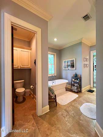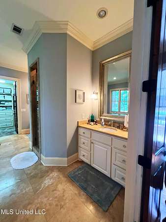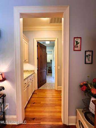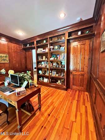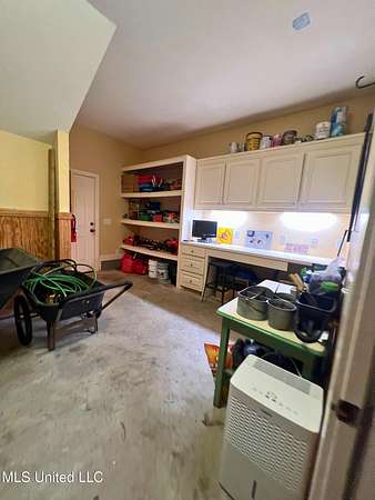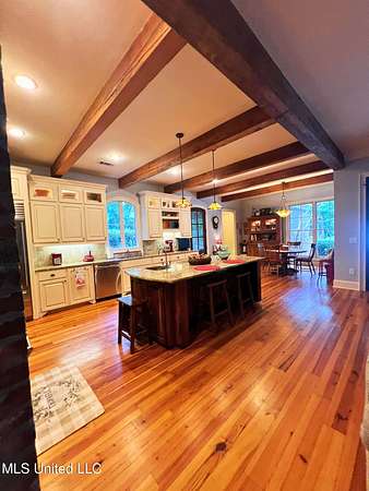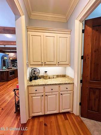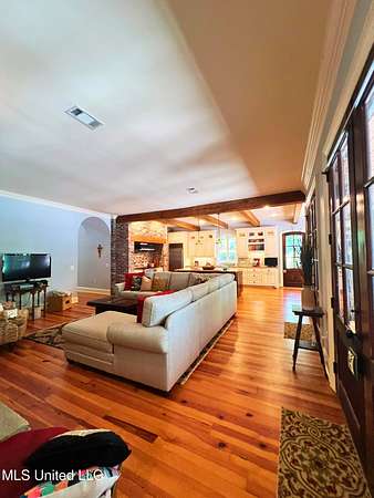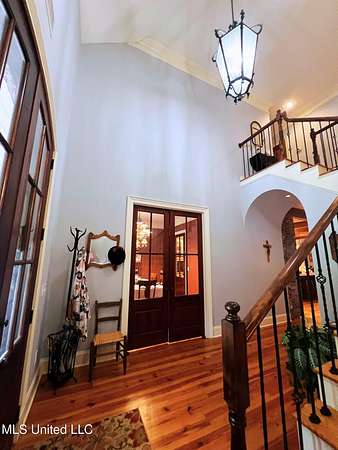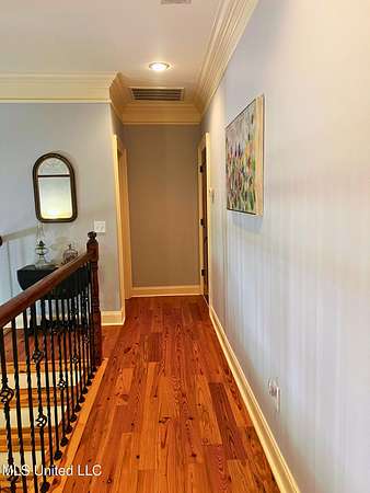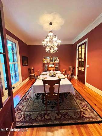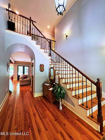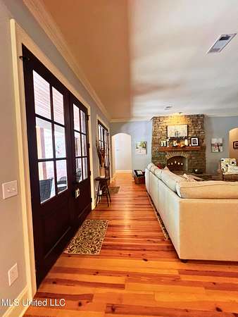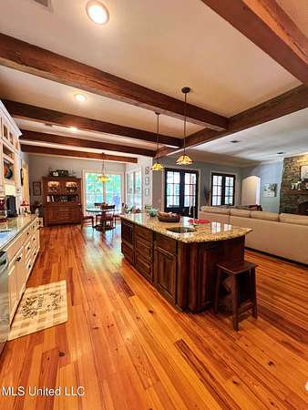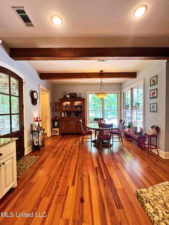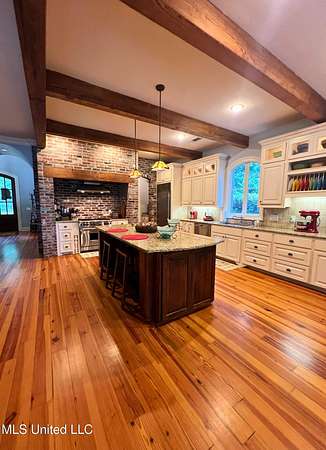 Welcome to this custom 3825 sq ft home located on approximately 8+/- acres in North Brandon Estates! The property consists of 6+/- acres of beautifully maintained land and 2+/- acres extending into the stocked 50+/- acre neighborhood lake. From the moment you step into the foyer, with its soaring ceilings, stunning heart of pine flooring, and elegant staircase, you'll be captivated by the craftsmanship and attention to detail found throughout this Rankin County home. As you enter this beautiful home, to your left is the formal dining room, which offers the perfect space for entertaining. Straight ahead, the house opens into a large and inviting living area. At the heart of the home is a chef's dream kitchen-a true masterpiece featuring solid wood beams that add warmth and architectural charm. High-end appliances include a professional Wolf range, Wolf microwave, Sub-Zero refrigerator, and an oversized island topped with granite countertops. The island also features a prep sink for added convenience. A butler's pantry and an extra-large walk-in pantry are located just off the kitchen, offering additional storage and easy access to the formal dining space. Just beyond the kitchen is a guest's entrance and a charming alcove with built-in cabinets and granite countertops that leads to another multipurpose room ideal for crafts, hobbies, or extra storage, complete with additional cabinetry and counters. This area also provides access to a large laundry room with a deep utility sink. The large three-car garage features an extra work area for all your tools, along with a storage room and an entrance off the back. This area also features a small porch. From here, a stairway leads up to the unfinished attic, ready to be transformed into the ultimate mancave or bonus space. The family room is warm and welcoming, centered around a beautiful stone fireplace, and offers plenty of space for gathering and relaxing. A hall closet provides additional storage, with hidden storage space underneath the staircase. Located away at the end of a window-lined hallway, the private primary suite is a true retreat. It features pine flooring, a picture window with lake views, and a stunning primary bathroom offering separate vanities, a freestanding soaking tub, and a large walk-in shower. The massive walk-in closet features built-in storage, a granite makeup vanity, a washer and dryer (one of two laundry areas), and an additional room ideal for crafts, an office, or seasonal storage. On the opposite wing of the home, you'll find a spacious bedroom, a dedicated sewing room, a half bath, and an oversized office with built-in shelving and a large storage closet. Upstairs, two generously sized, carpeted bedrooms share a full bath, making them ideal for guests or family. Enjoy the peace and privacy of lakefront living, complete with all the modern conveniences you could ask for, in a beautifully crafted home with all the storage space you could ever dream of.