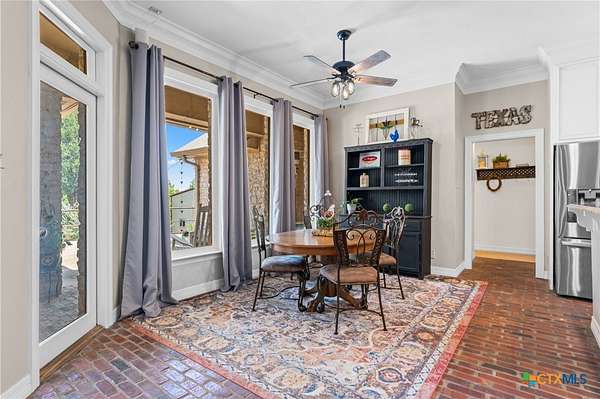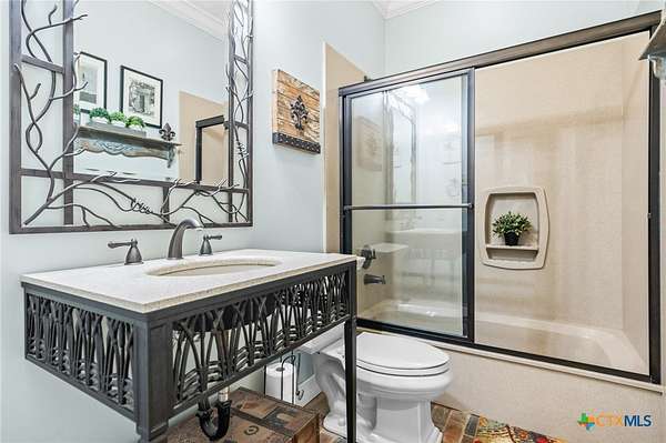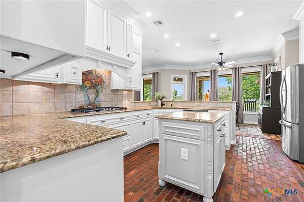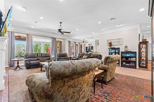 Designed for those who value privacy, space, and a setting that feels like an escape, 840 Winding Trail sits on a scenic 2.63-acre riverfront lot in the prestigious Three 17 River Oaks community. Mature trees and the gently flowing Bosque River create a peaceful, secluded backdrop-yet you're only minutes from dining, shopping, and everyday essentials. This is more than a home; it's a place to slow down, entertain freely, and enjoy the kind of lifestyle that rarely comes available in Crawford. Inside, over 4,000 square feet of thoughtfully designed living space invites you to relax and entertain with ease. From the grand living room with its soaring fireplace to the sunlit dining spaces and flowing layout, this home was built for both connection and quiet moments. The kitchen's semi-open configuration allows for effortless entertaining while keeping the culinary space discreetly tucked away. Brick flooring and crown molding add a sense of timeless elegance, while the expansive windows frame the scenic backyard views. The primary suite is its own private sanctuary, complete with fireplace, private access to the patio and hot tub, and a spa-like bath designed to start and end your days in comfort. A separate office or flex space, guest accommodations with private baths, and an upstairs game room or 5th bedroom offer flexibility for how you live. Step outside and the lifestyle expands-an elevated patio overlooks your personal resort, complete with saltwater pool, stone waterfall, slide, and diving board. A 32' x 44' insulated shop with power supports hobbies, storage, or business needs. For those seeking distinction, space, and a true sense of arrival, 840 Winding Trail is the property that delivers. Located in one of Central Texas' most coveted luxury communities, this is a rare opportunity to own a private estate that offers not just a beautiful home-but a lifestyle defined by comfort, elegance, and a lasting connection to nature.