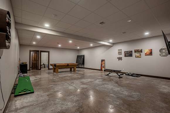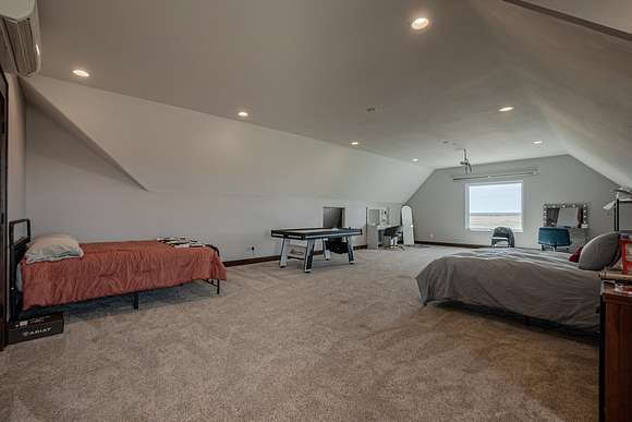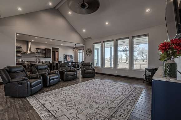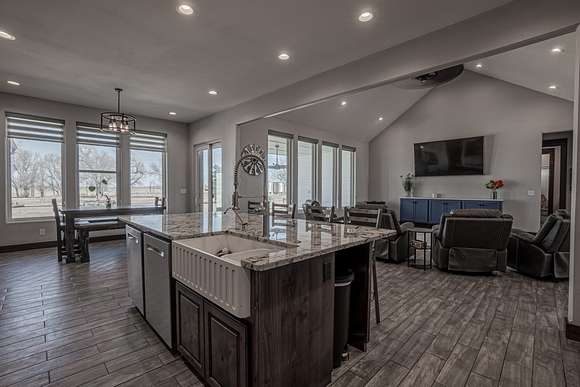 This 47-acre property off KS Highway 50 features a 6-bed, 4.5-bath modern farmhouse built in 2020, designed for power and comfort. The chef's kitchen has a commercial fridge/freezer, 8-burner stove, two dishwashers, and butler's pantry. The master suite includes heated floors, a walk-in shower, and a gun-safe closet. With an insulated barn, corrals, and a 1,200 sq. ft. garage, this turnkey property is built to work