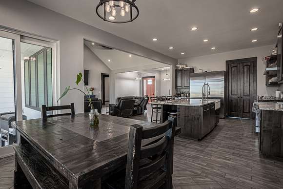 This stunning 7,000 sq ft modern farmhouse, built in 2020, offers the perfect blend of luxury, functionality, and rural charm. With 6 bedrooms, 4.5 bathrooms, two living rooms, and a large flex room, this home provides ample space for family living and entertaining. The chef's kitchen is designed for hosting, featuring an 8-burner gas stove, commercial-size refrigerator and freezer, nugget ice maker, two dishwashers, a butler's pantry, and a shopping unload door for effortless convenience.