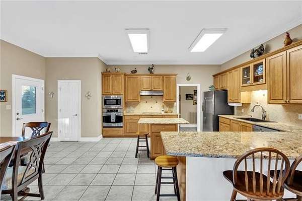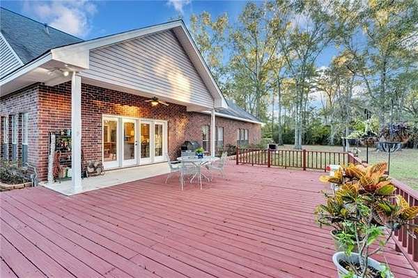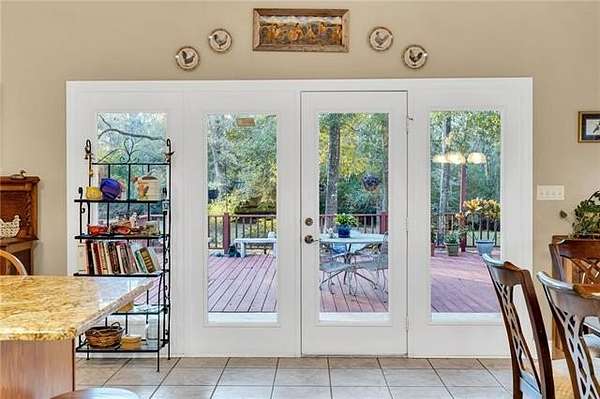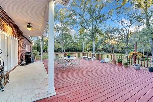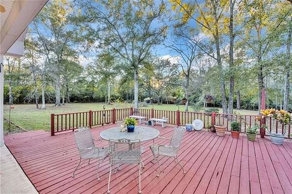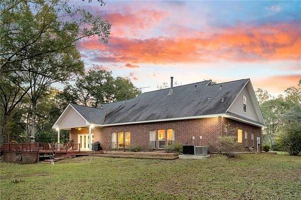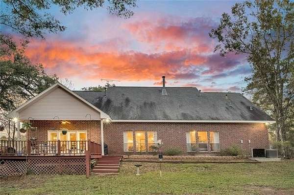 Nestled on over two acres in the tranquil rolling hills of Stone Lake Estates in Folsom, LA, this impeccably maintained brick home offers the perfect blend of charm and functionality. Gorgeous hardwood floors, high ceilings, and a cozy gas fireplace create an inviting atmosphere you'll love coming home to. The kitchen is a bright and spacious haven for entertaining, featuring granite countertops, stainless steel appliances, ample cabinetry, and a generous eat-in island. With four bedrooms, three full bathrooms, and a half bath, the layout is thoughtfully designed for comfort and privacy. Two guest bedrooms boast en suite bathrooms, making them ideal for family or visitors. The expansive primary suite includes a large bathroom with a jetted tub, walk-in shower, dual vanities, a water closet, and an additional closet for extra storage. Step out onto the expansive deck to savor peaceful mornings or relaxing evenings, surrounded by the natural beauty of your private retreat. Additional features include a two-car garage, a storage shed, and a charming front porch perfect for unwinding. Plus, the roof was replaced in 2020, offering added peace of mind. Property located in a flood zone C.