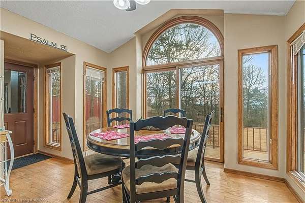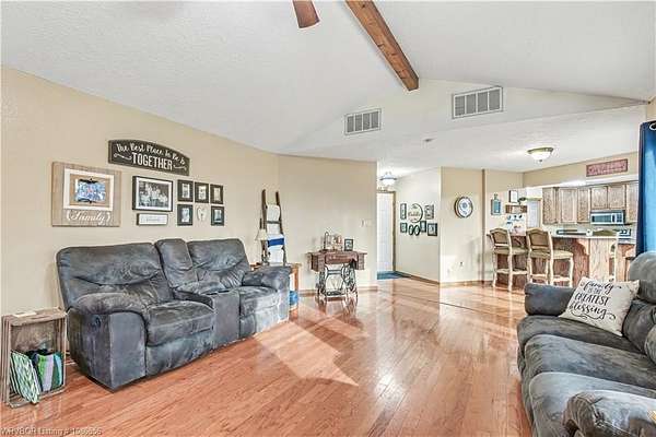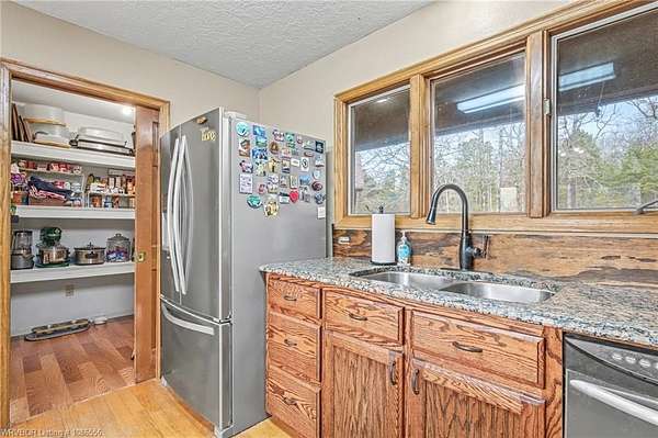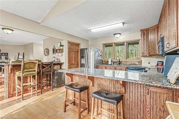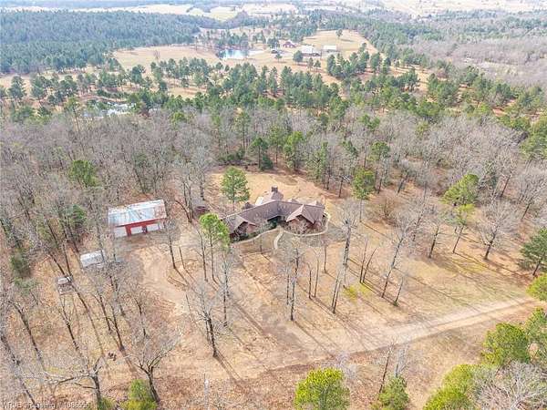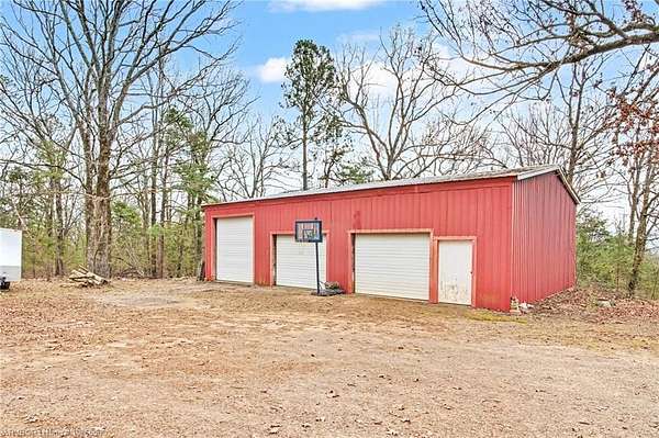 Tucked deep in the woods at the end of a long gravel drive, this secluded 3-bedroom, 2-bath home offers peaceful country living with timeless rustic charm. A circle drive welcomes you home, setting the tone for privacy and space surrounded by mature trees on 4 beautiful acres where wildlife is a regular sight-including deer, bear, and a variety of small woodland animals. Built in 1999, the home features approximately 2,500 sq ft on the main level, complemented by an additional 800 sq ft finished walk-out basement-ideal for a second living area, game room, or flexible bonus space. Warm wood finishes throughout the interior and exterior create a cozy, cabin-style atmosphere that blends naturally with the wooded surroundings. Large windows invite natural light and showcase views of the forest, while the expansive concrete balcony spans the back of the home, offering an elevated vantage point to watch wildlife pass through the property. Below, the walk-out basement opens to a covered patio area, extending the living space outdoors. The home is serviced by well water with a sand filtration system. A detached 32x48 shop with three roll-up doors provides additional storage or workspace while preserving the home's peaceful, retreat-like feel. With a 2-car garage, circle drive, and unmatched privacy, this property is ideal for those seeking space, seclusion, and a true rustic escape immersed in nature.