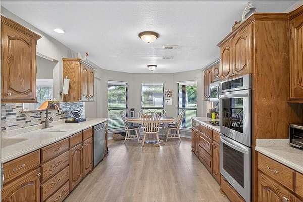 Need Room? 2.6 acres with another almost 5 fenced in acres available for a separate purchase. Spacious home with 2 primary bedrooms with their own private baths. Primary #1 bath has recently been completly redone with a walk in shower built for two. Saves water! Home has 2 other bedrooms, large living room with FP, large galley kitchen with a breakfast area, lots of counter space, appliances replaced about 2 years ago, DOUBLE CONVECTION OVEN!, built in microwave, solid surface tops with tile backsplash. Formal dinning room, large laundry room and many other desired features. Fenced front and back yards, 3 sheds, and get this, an approx. 1200 sq ft unfinshed building that could be a large shop, dance studio, craft gallery, in-laws quarters, guest house or rental. Let your dreams and desires plan the finishout. Rough-in electrical and plumbing are started. Its dried in with a metal roof, just finish the interior to suite you. Animals are welcomed at this country feeling home with modern conveniences. 45 mins to Dallas on Hwy 175. City of Kaufman about 8 miles west and Kemp, Cedar Creek Lake about 15 mins east. Cedar Creek Lake is said to be the 4th largest lake in Tx. Plenty of boating, recreation, resteraunts, close to schools, churches, and Hospitals, in a country atmosphere. So don't hesitate, come on down.