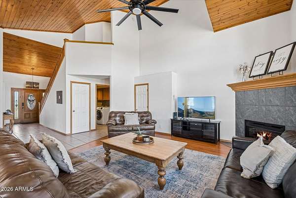 Experience serene mountain living in this beautifully appointed Flagstaff retreat! Set on 2.5 acres with sweeping mountain views, this spacious home offers privacy, flexibility, and room to breathe. Featuring 5 bedrooms & 4 baths, including 3 en suites, it's ideal for multi-generational living, hosting guests or a vacation rental. Enjoy cozy evenings by one of two fireplaces and relax in the bright, open living spaces with vaulted tongue & groove ceilings. Located in a quiet neighborhood, this property is currently a successful vacation rental and can be sold fully furnished--making it completely turnkey. The current Airbnb/VRBO Host and cleaners are ready and eager to support a new owner, truly an investors dream! A rare opportunity to own a peaceful mountain escape with income potential.