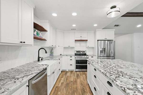 - Cable TV Available, Cathedral Ceiling(s), Decorative Lighting, Double Vanity, Eat-In Kitchen, Granite Counters, High Speed Internet Available, Kitchen Island, Open Floorplan, Walk-In Closet(s)