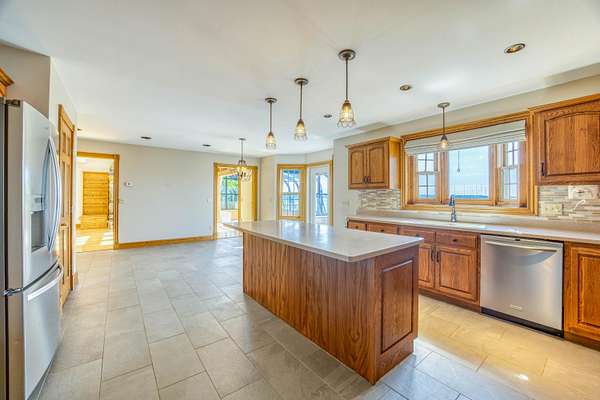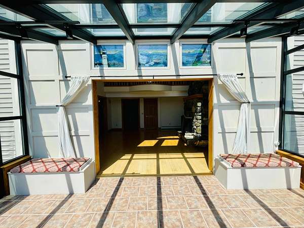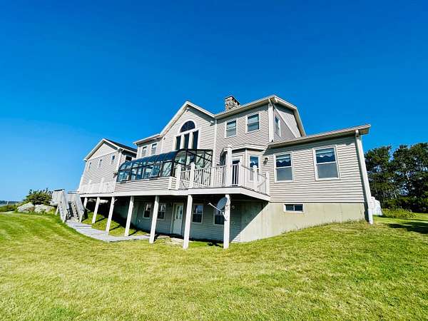 This stunning and expansive oceanfront colonial is a unique find in the heart of coastal Downeast Maine! Custom built and lovingly designed, this home boasts 5 bedrooms, 5 full bathrooms, 2 half baths, and two separate apartments spaces in addition to the main home. There is ample room at this beautiful ocean front estate! The large great room is the center of the home. It's cathedral ceilings with large custom stone fireplace make this space warm and inviting on the chilliest of Maine mornings. Off the great room is a sunroom with panoramic views of Holme's Bay. Enjoy the sunshine and a cup of coffee as seals and the occasional whale pass by in the bay. A beautiful staircase leading to the second floor greets you as you come through the front door. A study off the entry offers additional space and could be used for many purposes. This part of the home also offers a large eat-in kitchen with expansive pantry, double ovens, and a large laundry room. A formal dining room offers extra space for entertaining. The large owners suite, with ensuite bath, has a custom marble shower, matching double vanity, and soaking tub. The room offers a large walk-in closet with built-in shelving system, beautiful views of the bay, and private deck. In addition to the large main living area, the basement has a finished in-law apartment. The space includes a kitchen, bath, laundry, living area, and walkout entrance to the patio with an outdoor kitchen. Above the oversized, sheet rocked and insulated, attached garage with 2 bays and 4 spaces to park your cars or toys, is the second apartment with its own Kitchen, bath, laundry, dining, and living area, completed buy panoramic views of the bay. Both apartments are currently rented to short term tenants. There is an additional 2 car garage off the paved driveway for extra storage. With too many wonderful features to mention, this home is a must see!