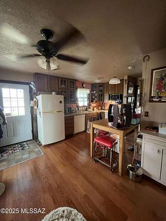 This immaculate and well maintained built home is ready to move in. Metal roof, Mini-ductless system, Covered front porch. Enlosed back porch with 280 sqft w/new windows with mini/split. It could be second bedroom, Tv room etc. Bedroom with good size closet. Comes with washer/drier, stove, refrigertor. & dishwasher. Tough shed with loft makes a great art studio, home office or bedroom for overnight guests. Workshop/storage shed for all your tools. Water well. Solar Panels. Mature trees. This is a site built only area. Gorgeous 360 degree mountain views. MILLION dollar view of the Cochise Stronghold. Peaceful, serene and close to everything. Wilcox, Benson I10 and more.