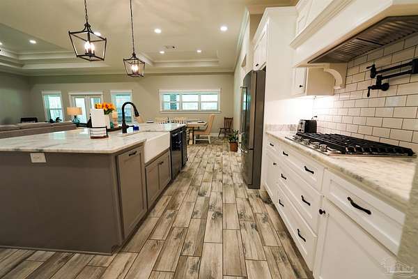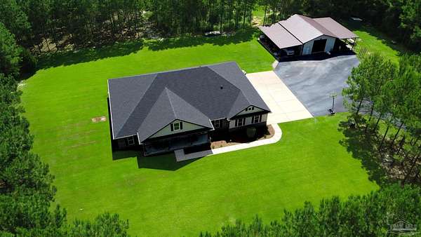 Priced $30,000 below its recent appraised value, offering an incredible opportunity for instant equity! Walnut Hill, Florida, life moves at just the right pace. The roads are lined with farmland and pine trees, neighbors wave when they pass, and Friday nights are for backyard cookouts and porch-sitting. At 8410 Hwy 97, you get all of that-and a home that takes small-town living to a whole new level. This isn't just another house in the country. It's a custom-built haven, unlike anything else in the area. Step inside, and you'll find a great room made for gathering-sunlight pouring through the windows, a cozy gas fireplace framed with built-ins, and views that stretch across your planted pines. The kitchen isn't just a kitchen-it's the heart of the home. With a gas stove, double oven, granite countertops, coffee bar, and a walk-in pantry that could make anyone jealous, it's the kind of space where big Sunday breakfasts and late-night conversations just happen naturally. The master suite is your own private retreat, complete with a luxury bath-clawfoot tub, walk-in shower, and a dream closet-and even a private door that opens to the back porch. There's a formal dining room for holiday dinners, a separate office for work or study, and storage everywhere you look. But the real magic? It's out back. A porch that runs the length of the home, with a gas fireplace, an outdoor kitchen, and plenty of room for long summer evenings with friends. Beyond that, the 30x40 barn with 20' lean-tos stands ready for your projects, hobbies, or equipment. Here, you're just 45 miles from the white sand beaches of Pensacola, 15 miles from I-65 and Wind Creek Casino. Close enough for convenience, far enough for the peace and space you've been craving. This is more than a home-it's a way of life. And in Walnut Hill, life's never been sweeter.