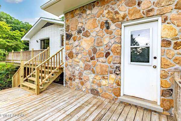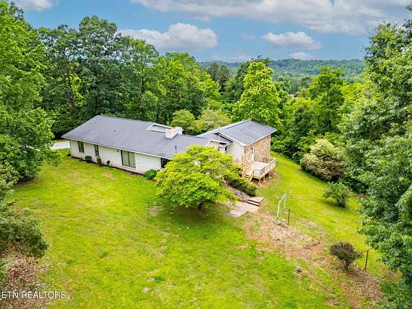 Timeless Character on 18+ Acres in South Knoxville. Welcome to 8412 Finger Road-a spacious, over 3,000 sq ft home nestled on 18.59 serene and usable acres in scenic South Knoxville. With its generous acreage, existing cleared building site, and flexible layout, this property offers a rare opportunity for multi-family living or creating a shared family haven. Built in the early 1980s, this hidden gem blends mid-century modern charm with vintage touches that today's buyers are seeking but rarely find. From its peaceful, pastoral setting to its uniquely styled interiors, this home is a true opportunity to create something special. Set on open, level land, the property offers over 18 acres of usable space-ideal for recreation, gardening, a family farm, or simply enjoying the peaceful outdoors. A beautiful pond adds a sense of serenity, creating the perfect backdrop for quiet mornings or sunset views. A peaceful meadow lies tucked away in the woods, offering a quiet retreat surrounded by nature. Separately, along the creek, there is a cleared building site with a poured foundation and electricity already in place-ready for your future plans. As you arrive, the home's classic brick exterior, detailed stonework with stone from English Mountain, and vintage globe lights immediately hint at the character and charm found throughout the interior. The walkway to the front door is lined with thoughtfully positioned garden beds, offering a warm and welcoming first impression. Step through the front door, and you're transported to a space inspired by mid-century modern design-marked by bold stone accents, striking architectural details, and expansive living spaces. A floating stair leads to the main living area, anchored by a stunning brick fireplace with an inlaid stone hearth that creates a dramatic focal point. The spacious layout flows into an adjoining sitting or dining area, where sliding glass doors open to a recently restored back deck-perfect for entertaining or simply enjoying the beautiful view of the property. The large eat-in kitchen features plenty of room for gathering, with a second access point to the deck for seamless indoor-outdoor living. Just off the kitchen is a two-car garage with a vaulted ceiling, adding both convenience and storage. The main level includes three generously sized bedrooms, each with its own personality. The primary bedroom boasts an en-suite bath that echoes the home's original design aesthetic and a large walk-in closet. A second full bathroom on this level features distinctive finishes that continue the home's cohesive character. Downstairs, you'll find an expansive rec room with a second fireplace framed by more classic stonework. A large flex room-with potential for a home office, gym, guest suite, or extra bedroom-sits off one side of the rec space, along with a full bathroom. On the opposite side, two additional large rooms offer endless potential as workshops, a second kitchen, storage areas, or creative studios. This is a home with soul-a place where craftsmanship, style, and setting come together in perfect harmony. With thoughtful updates and a bit of imagination, 8412 Finger Road offers a once-in-a-generation chance to restore and reimagine a true Knoxville original.