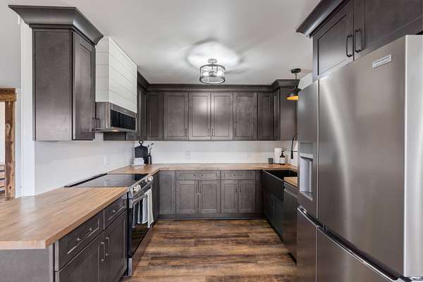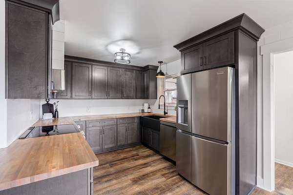 You’ll love the cozy living room and separate sitting area with fireplace, along with the beautifully remodeled kitchen showcasing butcher block countertops, a large farmhouse sink, and new stainless steel appliances. This home features 3 bedrooms and 2.5 bathrooms, a spacious primary suite with a private bath, large walk-in closet plus extra second closet space.