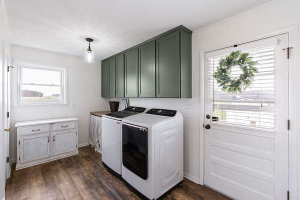 You can step inside from the carport or back patio into the huge laundry/mud room, the perfect drop zone for shoes, backpacks, and all the things after a long day. Enjoy grilling on the patio and fully fenced backyard ideal for pets or even small farm animals all surrounded by BEAUTIFUL farmland with no backyard neighbors.