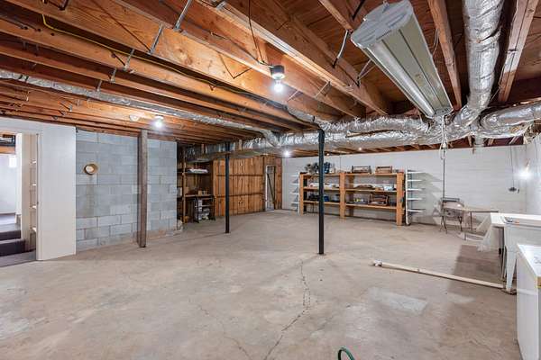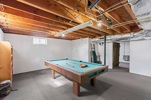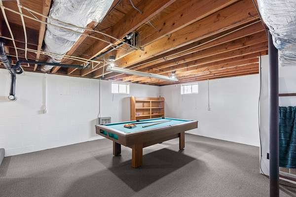 The massive basement offers endless possibilities! Fun game room includes a pool table that stays, making it ready for entertaining from day one! Separate space for office or guess room that’s heated and cooled. Giant area for storage and all your hobbies.