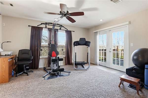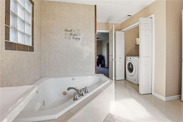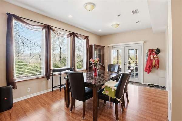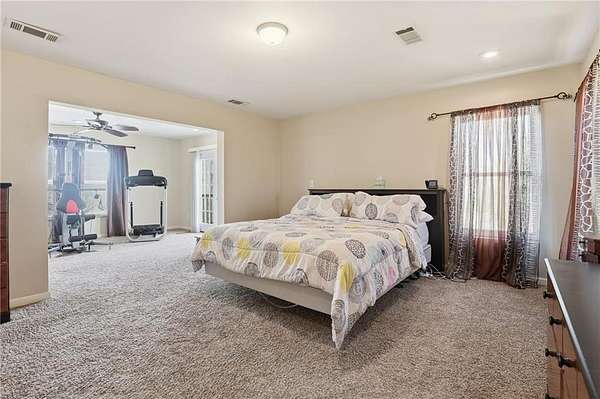 The fantastic open floor plan boast 10 foot ceilings in the main gathering area of the home. The kitchen opens to the dining room with double doors showing a wonderful view of the open treed private lot great for viewing wildlife while sipping a drink and relaxing. The second floor also offers high ceilings and an open floor plan. The large master bedroom and large full bathroom comes with a nice jetted tub. There is a laundry area positioned there as well. A nice deck is positined off the master leading to the outside for night and early morning enjoyment .