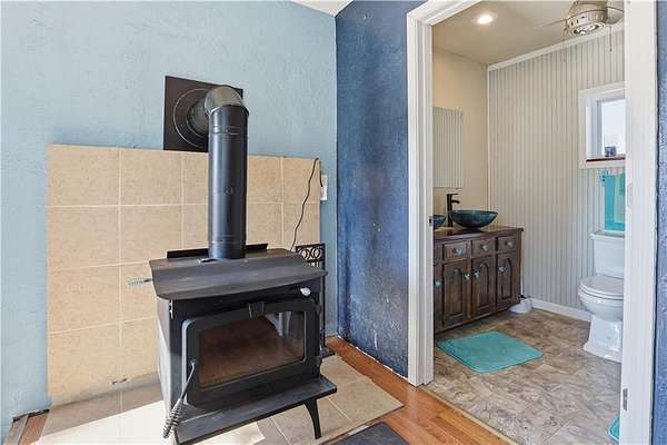 - Forced Air, Wood, Wood Stove