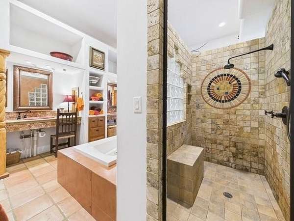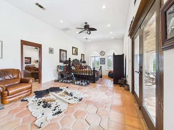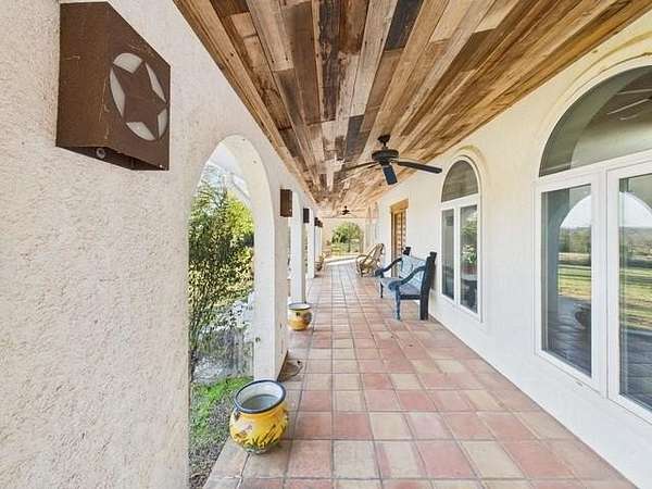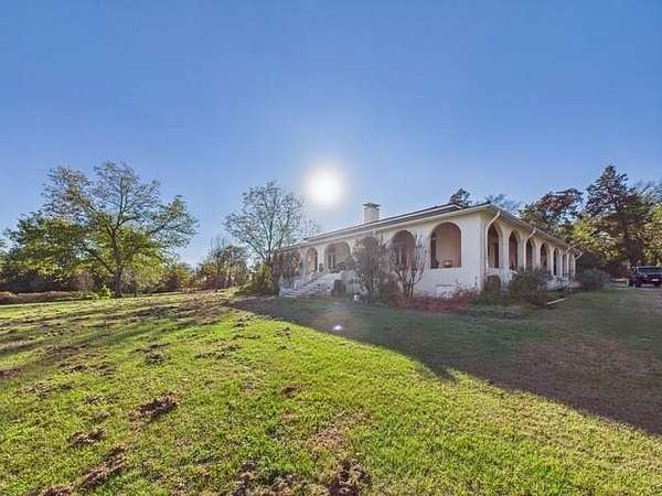 Looking for a Central American style retreat, without ever leaving East Texas? This stunning Spanish-inspired custom home sits on 5, fully fenced, picturesque acres & delivers an authentic, handcrafted feel just 10 minutes from downtown Athens. Thoughtfully designed for beauty, comfort, & energy efficiency, the home features a solid concrete frame with a stucco finish & a unique foundation of imported geothermal rocks. A rain-encatchment system, housed beneath the porch, waters the grounds surrounding the home, bringing sustainability & smart engineering together. With 2,565 sq ft, this unparalleled property welcomes you with wrap-around Saltillo-tiled porches showcasing peaceful countryside views in every direction. Inside, natural light fills the spacious living & dining areas accented by bullnose arches, custom wood beams, & hand-carved details throughout. Every room in the home offers direct access to the wrap-around porch, creating seamless indoor-outdoor living & capturing the feel of a traditional villa. The gourmet kitchen is a standout, offering floor-to-ceiling real-wood custom cabinetry, a long center island, double oven, pot filler, walk-in pantry, and 2 sinks, ideal for entertaining & everyday living. The primary suite spans an entire side of the home, offering lush pasture views from every window. The primary bathroom is a retreat of its own, complete with a deep soaking jacuzzi tub, large tiled walk-in shower, & a double vanity featuring custom Talavera sinks. A dedicated office can easily convert to a third bedroom if desired. Like the furnishings? Custom cabinetry & furniture are available for purchase separately. An asphalt driveway winds through the property, past the large workshop, perfect for all your projects, that is connected to its own deep well. The paved path continues, leading you to the home's inviting entrance. A true East Texas oasis with the soul of a Latin hacienda! Homes like this are rare, remarkable, & unforgettable.