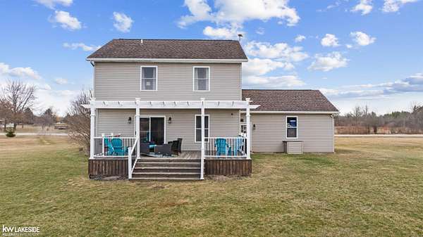 3.5 acres of peaceful countryside, this well-maintained Colonial offers space, privacy, and thoughtful updates throughout. Inside, the main level features durable engineered hardwood flooring and a bright kitchen designed for both everyday living and entertaining. The space is highlighted by quartz counters, and newer appliances installed in 2023. Upstairs, you’ll find three bedrooms, 2 full baths and the convenience of second-floor laundry, making daily routines simple and efficient. All three bathrooms are updated with modern finishes and fixtures. The finished lower level expands the living space and provides flexibility for recreation, entertaining, or a comfortable secondary living area. Outdoor living is where this property truly shines. Enjoy quiet mornings on the front porch swing, take in sunsets from the rear deck beneath the pergola, or spend the afternoon by the stocked pond complete with a paddleboat. The property also includes a 10x16 storage shed and an attached two-car garage with additional attic storage. Recent mechanical improvements include a new furnace, new central air conditioning system 2024, water filtration system updated 2022, and a sump pump replaced in 2024. An invisible fence is also installed for added convenience.