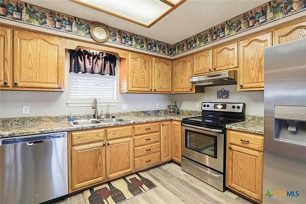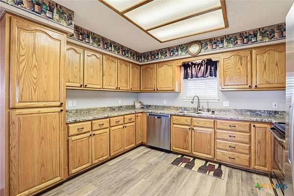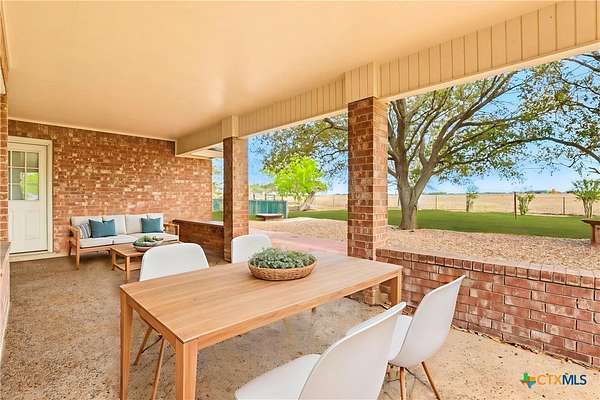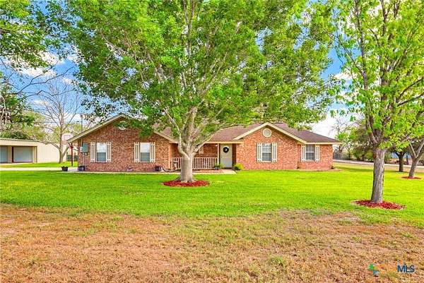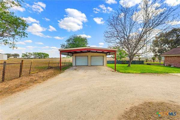 Acreage! Poth ISD! Site Built Home!!! Welcome to Kosciusko-yes, it's fun to say and even better to call home. Situated on 4 beautiful acres in Kosciusko, Texas, this charming single-story all-brick home offers peaceful country living with convenient access to nearby cities, all on a paved road. Inside, you'll find a bright, open living area with vaulted ceilings, abundant natural light, and new laminate flooring throughout. The spacious kitchen features ample cabinet space, included appliances, a walk-in pantry/mudroom, and plenty of room to add an island. The split floor plan provides privacy, with a generous primary suite offering an updated walk-in shower, extensive cabinetry, a walk-in linen closet, and private access to the covered back patio. Two secondary bedrooms with new carpet share a hallway bathroom. Outside, the property truly shines with mature shade trees, lush carpet grass, a covered back patio overlooking a beautifully landscaped yard, and a full sprinkler system. The acreage is fenced and cross-fenced with a circular driveway, and there is no HOA or deed restrictions, making it ideal for 4H and FFA animals. Additional features include an attached two-car side-entry garage and a detached 24x24 shop with electricity and a metal 24x24 carport tall enough for farm equipment. Located within the highly sought-after Poth Independent School District, with easy access to Hwy 123 and a quick commute to Seguin and San Antonio, this property also offers a unique turn key income: a communication tower lease that conveys and generates $500 per month in income and free high speed internet!