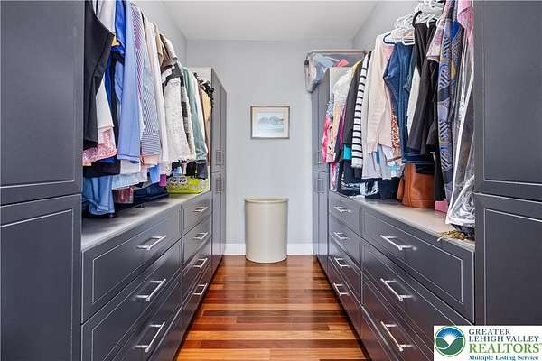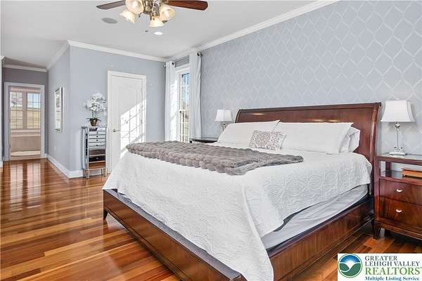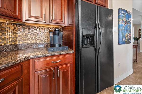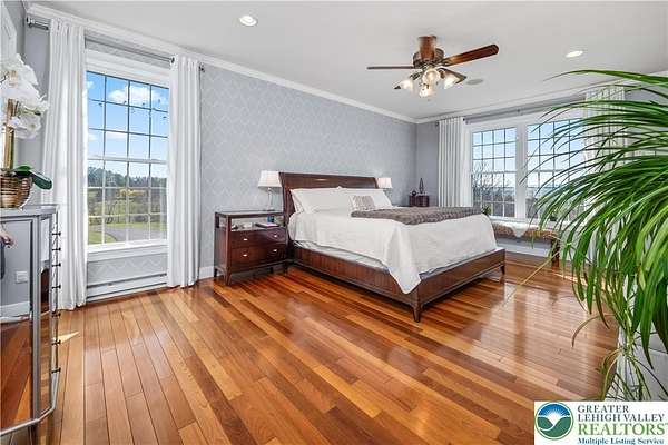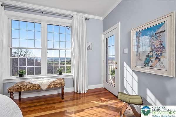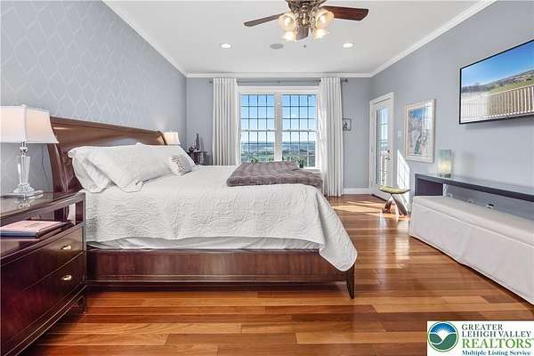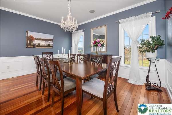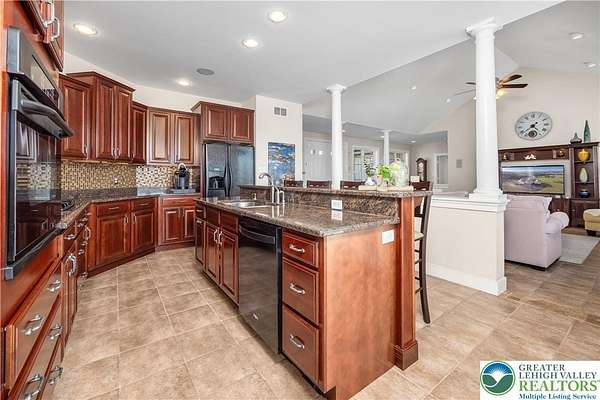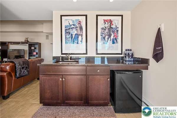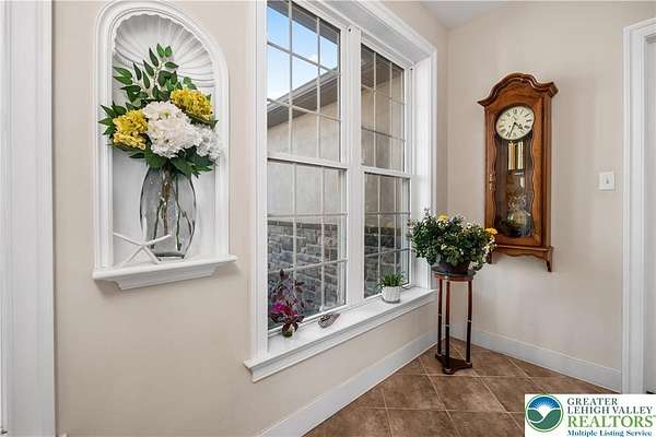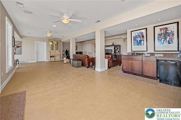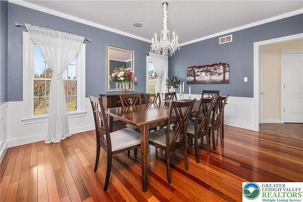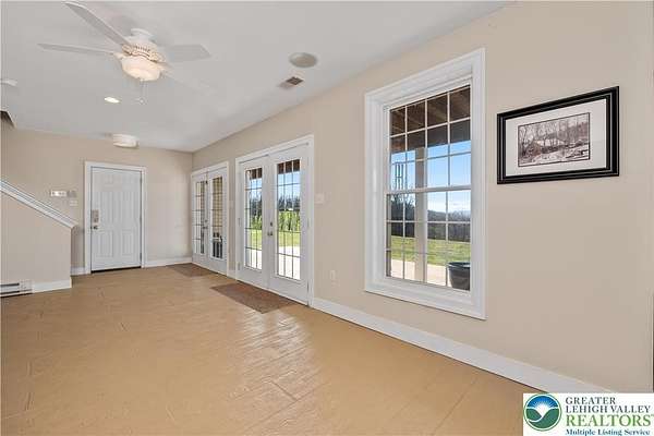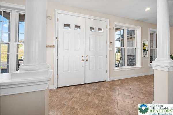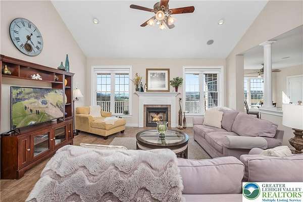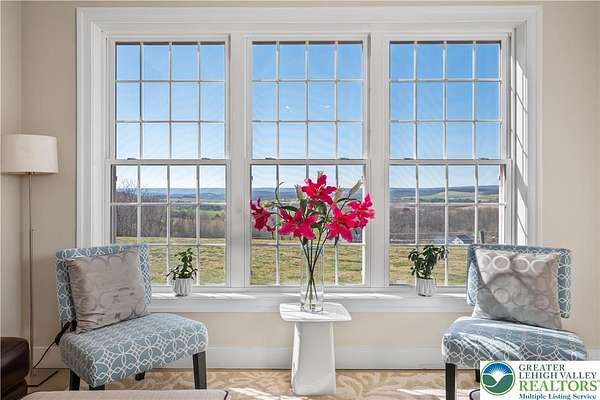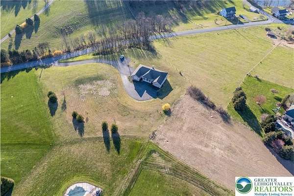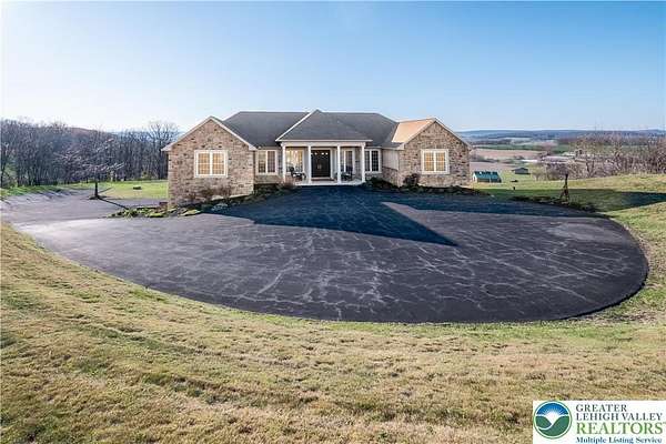 Experience REFINED COUNTRY LIVING in this one-of-a-kind sprawling ranch, perfectly positioned on a 3.22-acre lot. This CUSTOM BUILT HOME captures the essence of tranquility, offering a front-row seat to the beauty of nature with serene, PANORAMIC VIEWS of a neighboring HORSE FARM. From the moment you arrive, the DOUBLE-DOOR ENTRY sets the stage for a home defined by elegance and meticulous detail. The interior features a total OPEN CONCEPT LAYOUT, anchored by stunning Brazilian Cherry HARDWOOD FLOORS paired with ceramic tile that flows beautifully throughout the main living areas. The spacious Great Room boasts soaring cathedral ceilings, elegant architectural pillars, and a cozy fireplace designed for large-scale entertaining. Elevate your lifestyle with a fully integrated, whole-home SONOS SOUND SYSTEM, offering seamless audio perfection in every room. Flooded with natural light, every room is strategically designed to invite the views of the rolling mountains and valley inside. The stylish kitchen features premium GRANITE COUNTERTOPS and high-end finishes. Storage is unparalleled with a massive walk-in pantry that even houses an extra refrigerator for seamless hosting. Transition easily from the bright and airy Breakfast Room to the expansive TREX DECK where you can enjoy outdoor dining against a backdrop of pristine Pennsylvania countryside. The PRIMARY SUITE serves as a true PRIVATE RETREAT, offering generous dimensions and direct deck access. Its SPA-LIKE BATH featuring a ROMAN WALK-IN SHOWER, a large jacuzzi tub, and custom ceramic tile work, is complemented by a spacious WALK-IN CLOSET & first level Washer and Dryer. The LARGE WALK-OUT FINISHED LOWER LEVEL provides incredible versatility, already featuring a bedroom and full bath. Beyond the spacious 2-car garage, a side storage shed handles all your larger equipment. Located in the desirable Northwestern Lehigh School District, this home offers the perfect balance of RURAL PRIVACY and MODERN LUXURY. Enjoy the peace of the countryside while being minutes from LOCAL FAVORITE WINERIES and major commuting routes. A rare opportunity to own a custom home where luxury meets a breathtaking landscape.