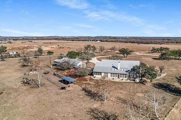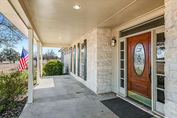 Set on over 5 pastoral acres in the heart of the Texas Hill Country, this private Fredericksburg retreat blends timeless Hill Country architecture with thoughtful modern functionality. Just 10 minutes from Main Street Fredericksburg and the Texas wine country, and approximately 1.5 hours from downtown Austin. The multi-building compound consists of a 3-bedroom main home, detached guest apartment, 2-car garage with workshop as well as covered automobile and RV areas. Charming Texas ranch aesthetics begin with the limestone exterior and metal roof and continue inside with wood and concrete floors, granite countertops and quality wood doors. The flat landscape offers the opportunity to expand the compound with additional dwellings, a studio, pool or almost anything else you can dream up. Whether envisioned as a full-time residence, weekend retreat, or legacy Hill Country property, this offering delivers timeless Texas character, thoughtful design, and exceptional versatility near the Texas wine country.