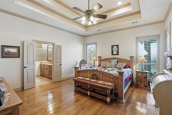 - Built-In Features, Decorative Lighting, Double Vanity, Eat-In Kitchen, Granite Counters, Kitchen Island, Natural Woodwork, Open Floorplan, Pantry, Walk-In Closet(s)