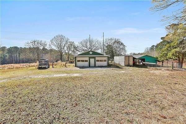 Bring your Horses!!! This Farm offers a perfect blend of functionality, beauty, and country living on almost 20 acres in a prime South Fulton Location!! The property is surrounded by mature oak trees and gently rolling land and was designed with equestrians in mind. Large shed row style barn built in 2024 with custom milled oak and pine lumber. Four stalls, two doors per stall, and feed room. Very high ceilings, metal roof. Barn is shaded by beautiful mature oak trees. Property is fenced and cross-fenced into multiple paddocks that lead to barn and large run-in shed that is 20 by 30. A professionally packed and graded regulation sized dressage arena ready to be topped with your footing of choice. 2000 square foot professional workshop converted into large tack room and studio with full apartment. 2- 40' storage containers for hay or other farm storage needs. Large well-built chicken coop with large fly cage attached. 4 sided brick ranch home on property and it is convenient to Hwy 74 & I-85 | 20 minutes to the airport | 12 miles to Peachtree City | 9 miles to Serenbe.