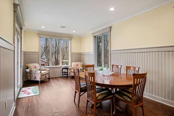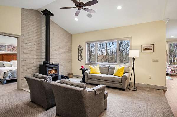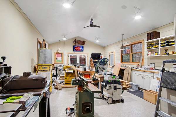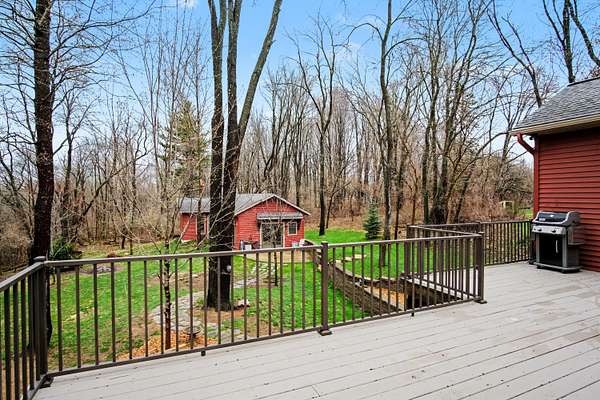 Escape to this high-quality 4-bedroom, 2.5-bath home nestled on a scenic nature road in the Rockford School District. Set against a backdrop of mature woods and abundant wildlife, this residence features 2x6 construction and 9-foot ceilings. The chef's kitchen is a masterpiece, offering a center island and custom walnut soft-close cabinetry. Relaxation is easy in the upstairs living room, featuring a cozy wood burner for quiet evenings. The finished walkout basement boasts high and beautiful redwood ceilings, a dedicated workout area, and plenty of space for recreation. Outside, the expansive deck offers stunning views of your wooded surroundings. Hobbyists will appreciate the 828 sq. ft. separate workshop, complete with professional epoxy floors, radiant heat, and its own fireplace. Combining superior craftsmanship with a tranquil, wildlife-filled setting, this property offers both luxury and functional versatility. Schedule your tour of this private Rockford sanctuary today!