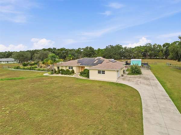 Family Compound THE OASIS. A custom built Citrus County estate offering peaceful luxury, multigenerational living and usable acreage. This 4 bedroom 4 bath residence with 3 car garage and 3,000 SF under roof sits on 4.79 acres of flat dry fully fenced and cross fenced land with mature oaks, gardens and no HOA, providing space for animals, RVs, boats, equipment and all your toys.