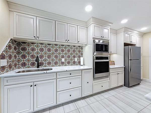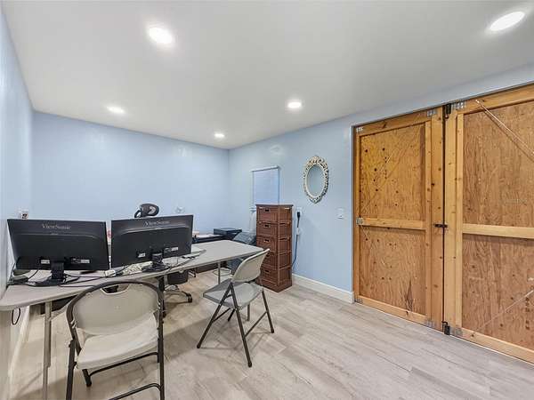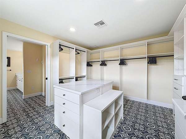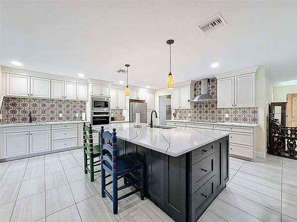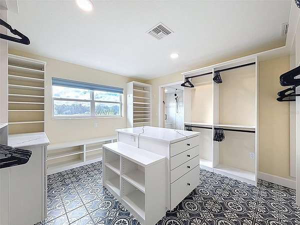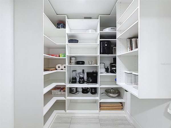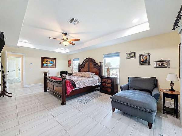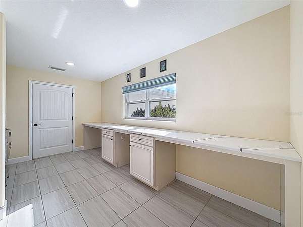 The private primary suite functions as a true retreat with 2 spa like bathrooms, 2 custom walk in closets and direct access to the lanai. Secondary bedrooms feature tray ceilings, ceiling fans and flexible ensuite options that work well for multigenerational living, long term guests or private quarters. Inside you will also find a spacious laundry room with storage and folding space, a mudroom with built in cabinetry and an integrated animal wash and utility tub for pets, gardening and projects.