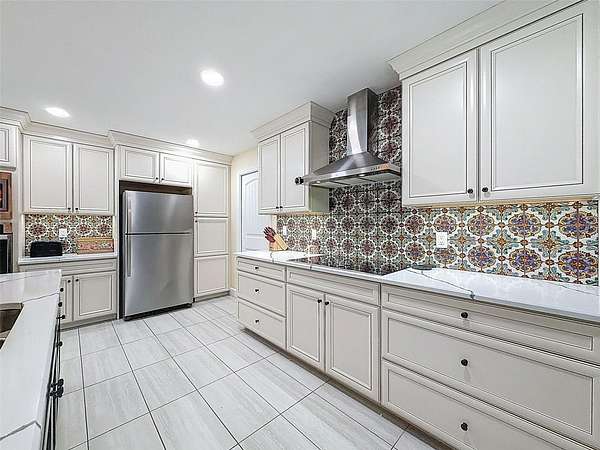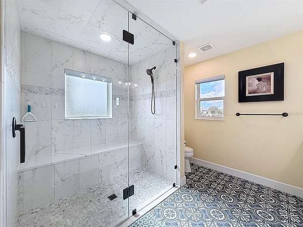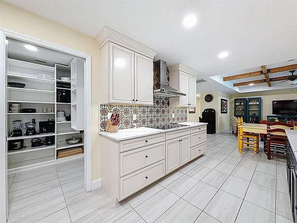 At the heart of the home is the chefs kitchen, ideal for entertaining and everyday living. Highlights include a 9 foot island, quartz countertops, soft close cabinetry, stainless steel appliances, under cabinet lighting and a walk in pantry with California Closet organization. Talavera tile backsplash and bathroom floor tile imported from Mexico add color, texture and artisan character.