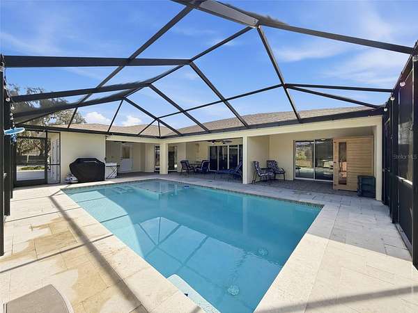 Outdoor living is a highlight of this property. The screen enclosed lanai includes a sparkling pool, spa and sauna plus a fully equipped outdoor kitchen with granite countertops and marine grade cabinetry so you can cook, dine and entertain poolside year round.