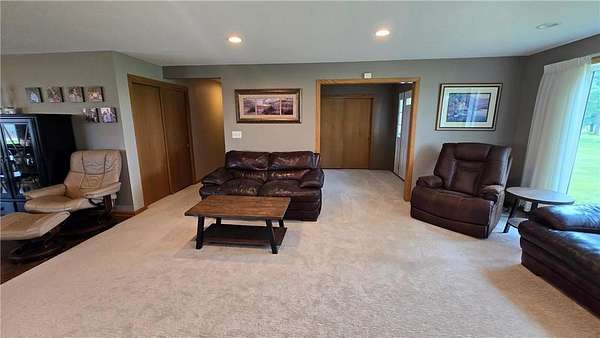 Discover this rare and beautiful large home situated on over 6 private acres, offering the peace and quiet of country living without sacrificing convenience. This exceptional property provides a comfortable, spacious house, an oversized heated garage, and a recently built massive 48' X 70' storage shed--perfect for hobbies, business or collecting! Enjoy the comfort of quiet country life while remaining centrally located near charming small towns, easily accessible mid-sized Cities, and less than an hour from the Twin Cities and Rochester. Schedule your private showing today!