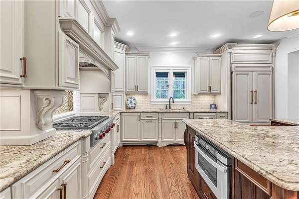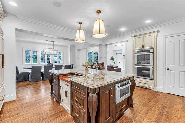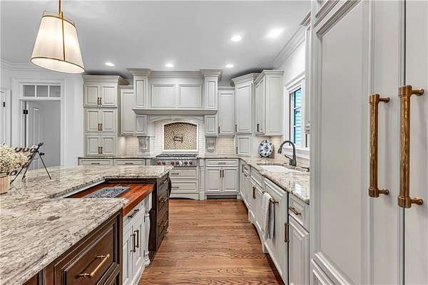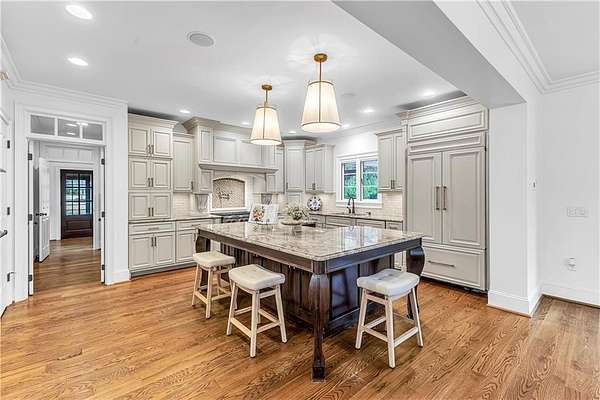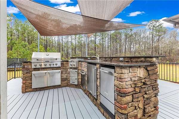 Country living, City limits. Grand Oaks welcome you to this stunning nearly 3 acre estate located 7 min from Moore’s Mill Publix & 15 min from Auburn University’s Campus. No subdivision restrictions. Top to bottom updates throughout, completely repainted interior & all new light fixtures. Stately columns frame the stone porch entrance. The foyer opens to the Living Room w/ceilings to the 2nd level. Views of towering mature trees can be seen throughout the home. To the right of the foyer, a transom window doorway leads you to a flex space perfect for an office or nursery. The Primary Suite has a private deck, spacious walk-in closet w/built ins & en suite bath with custom shelving, dual vanities, soaker tub, floor to ceiling tiled shower w/three shower heads & a separate water closet. True hardwoods throughout the home w/exception of tile in bathrooms/laundry room & new carpet in bonus (Nov 25’). A framed arch leads you to the Living Room which features a gas fireplace, a bar area w/custom cabinetry & a set of back doors encased by large windows that open to a stone patio & pergola w/concrete pad. Crown molding featured throughout the home. The Living Room also opens to the Kitchen & Dining Area featuring a 13 ft built-in bench w/storage drawers. The Kitchen boasts freshly painted cabinets, new hardware, oversized island w/storage, Wolf gas range, double oven & walk-in pantry. Past the kitchen through another set of French doors w/a transom window, find a half bath, considerable laundry room, mudroom area w/an abundance of storage & a stairwell leading to the large bonus room. New hardwood flooring (Nov 25’) in all 3 upstairs bedrooms & primary suite closet. Enjoy outdoor living on the deck with a wood burning fireplace and a chef’s dream of an outdoor kitchen complete w/a grill, fridge, sink & ice maker. Fully fenced backyard. Teak deck, wood doors & all beams stained Feb 26’