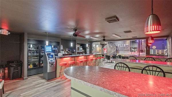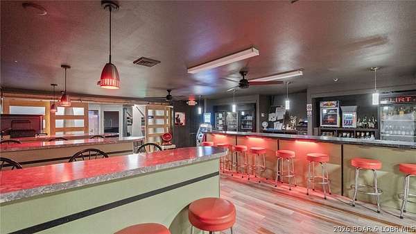Established commercial opportunity in the heart of Osage Beach with prime Highway 42 frontage and high visibility. This 3,112 sq ft property on .62 acres features a turnkey entertainment venue setup with spacious bar area, main stage, multiple VIP seating areas, dressing rooms, restrooms, reception/entry lounge, and bonus upper-level space ideal for office, storage, or expanded operations. Large paved parking area offers ample customer access. Property has a strong history of continued improvements including full remodel (2004), paint update (2008), upholstery, paint and lighting updates (2012), addition of 4 VIP rooms, flooring, restroom and lighting upgrades (2017), exterior paint and landscaping (2021), and new seating/barstools (2023). Longstanding location with rare operating history and strong presence in a high-traffic Lake of the Ozarks corridor. Multiple possibilities for investors, owner-operators, or redevelopment opportunities. Financial information available to qualified buyers.