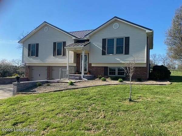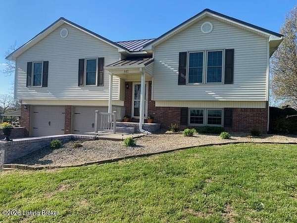 When only quiet country living will do, this is the home for you! Serene country atmosphere awaits you at 843 Hobbs Lane in Cox's Creek, KY! This wonderful spacious & comfortable three-bedroom 2.5-bath well maintained brick & vinyl bi-level home offers a metal roof & is situated on 8.17 quiet country acres. A covered front porch greets you as you enter the home. The main level of the home offers a spacious living room & large Kitchen/Dining area. Kitchen features lovely custom cabinetry with new hardware, full complement of stainless appliances, new kitchen faucet along with solid surface countertops. Convenient main level laundry closet is a bonus. Primary suite is housed on the main level along with two additional bedrooms & full bath. Venture downstairs to enjoy the the Den/Family Room or perfect Man Cave with cozy fireplace. Half Bath & additional room that could be used for many purposes including office, toy room, hobby room or guest room. The two car lower level heated & cooled garage with front driveway access completes the lower level. Outdoor features include an amazing enclosed & covered back porch, the perfect spot to enjoy scenic views with your morning coffee. Large metal shop with covered lean to is great for workshop as well as provides additional storage. This property is convenient to all the amenities of historic Bardstown & is a great commute location to Louisville. This little gem has it all with its updates, modern conveniences & scenic views. Don't Delay! Give us a call today & let's make this your forever home!