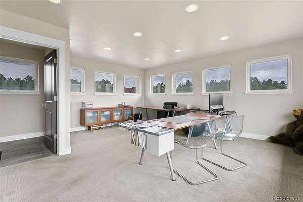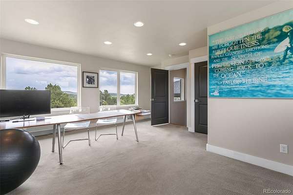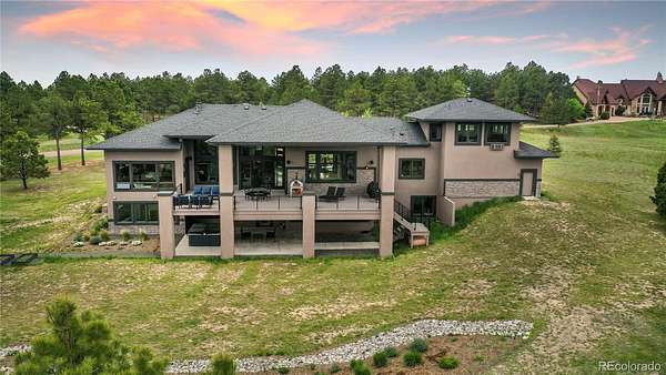 Welcome to this extraordinary custom home in the highly sought-after Tall Pines Ranch community. Nestled on a private 2.62-acre corner lot and surrounded by mature pines and views, this one-of-a-kind residence offers the ideal blend of luxury, comfort, and functionality with 8,416 square feet of thoughtfully designed living space. With 5 spacious bedrooms, 7 bathrooms, and 3 gas fireplaces, this home was built to impress. Soaring ceilings and expansive windows fill the interior with natural light, creating seamless indoor-outdoor flow. The gourmet kitchen is a chef’s dream, featuring a massive center island, high-end appliances, double ovens, a walk-in pantry, and an ideal layout for both entertaining and everyday living. The luxurious primary suite offers spa-like tranquility with a soaking tub, dual vanities, oversized walk-in shower, and private outdoor access. Additional bedrooms are generously sized with wellappointed en-suite bathrooms. A dedicated office above the garage provides a quiet space for remote work, hobbies, or a home studio. The 5-car garage includes 220V power for an RV or electric vehicle, along with ample space for tools, toys, or a workshop. Additional highlights include two 50-gallon hot water heaters, two furnaces, a full alarm system, wiring for a full smart home system, and a basement plumbed for a wet bar, offering both comfort and future customization options. Enjoy Colorado’s beauty year-round from the expansive covered deck, or unwind in the private courtyard surrounded by trees—or simply relax and take in the great views from the back deck. The finished walk-out basement offers versatile space for a media room, home gym, or guest suite, customizable to suit your needs. Located in North Colorado Springs, this home offers easy access to Denver via I-25 or scenic Highway 83 and is close to Monument, Monument Lake, Palmer Lake, shopping, dining, and recreation. This property combines privacy, convenience, and timeless Colorado living.