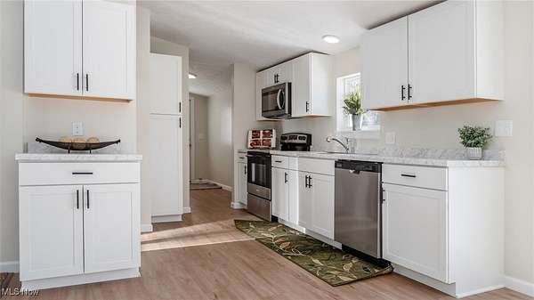 Est $1,369/moExceptionally updated home! New roof, new siding, new windows, new furnace and central air, new kitchen cabinetry, new flooring and more! All you need to do is pack and move in! Inviting interior features vaulted ceilings providing a sense of space! Efficient kitchen and dining area opens to nice, large deck overlooking the spacious back yard. Nice breezeway connects the house to the 2-car attached garage with new doors.
