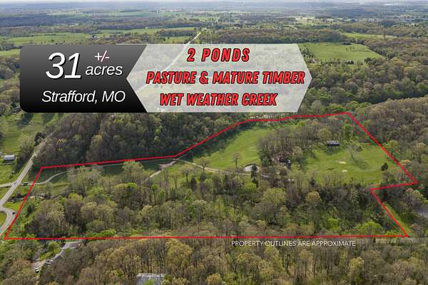 If you've been waiting for the right piece of land--you just found it.31.69 acres +/- of rolling pasture, scattered mature trees, two peaceful ponds, and a winding wet weather creek create a setting that feels miles away from everything... yet you're just minutes from Springfield and Highway 65.This property is all about the land. It's the kind you walk and immediately start dreaming--horses grazing, a new home perfectly placed, sunsets over the water. Existing structures include a barn and a lean-to with electric, plus a farmhouse that's ready for a fresh start.And yes--the horses may stay, making this a turnkey opportunity for the right buyer who's ready to embrace the lifestyle.Opportunities like this--location + usable acreage + natural beauty--don't come around often.